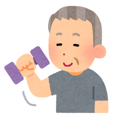 身体的フレイル予防に大切なのが筋トレです。下半身は40代から、上半身は60代から衰え始めるので、中高年こそ筋トレすべきなのです。60才を超えてから筋トレなんて無理と思われがちですが、強い負荷をかける必要はありません。運動の強度を落として、その分回数を多くすればよいのです。